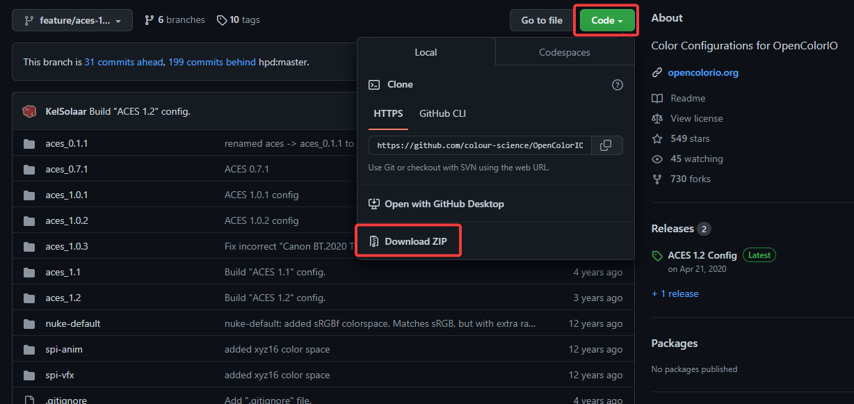 - Download the ACES/OCIO config.ocio file