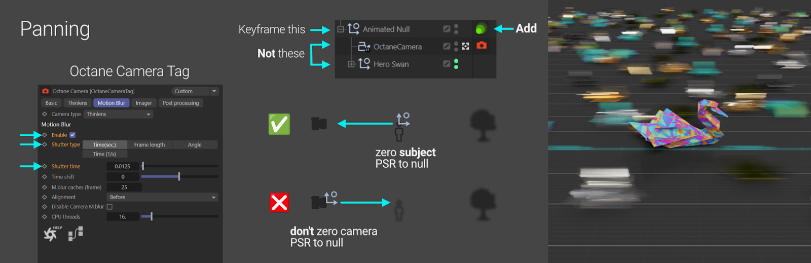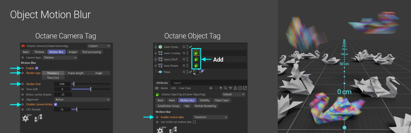 4. Every object that we want to apply object motion blur to requires an Octane Object tag. No tag = no object motion blur. The tag can be applied to a parent object (like a null) that contains several objects.