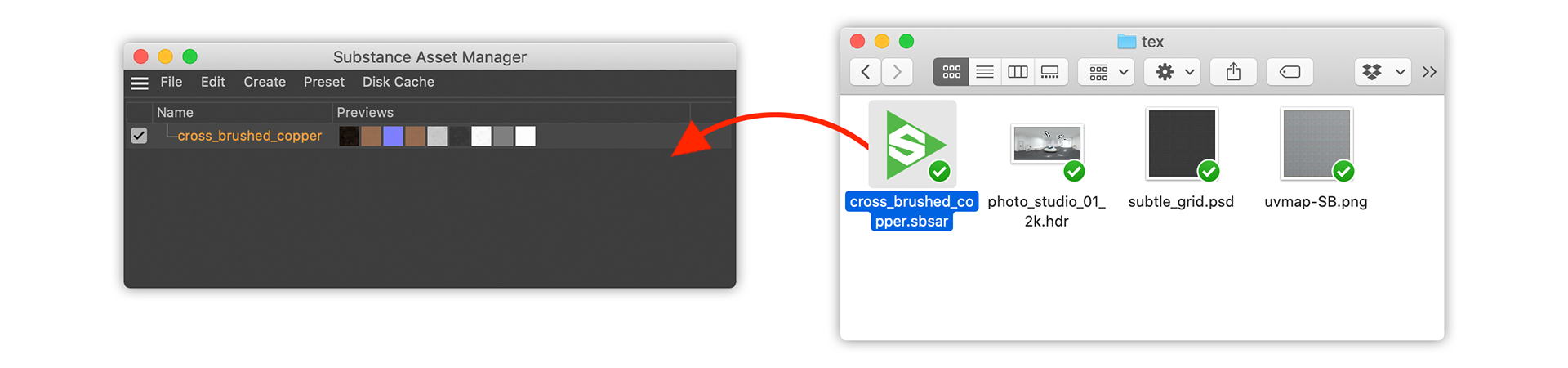 A Substance Archive (file format is SBSAR, often just called "Substance" - I use all these terms interchangeably) is an amazing file format that contains a ton of information about a material - color, pattern, roughness, bump, displacement, even advanced properties like subsurface scattering, masks and custom channels. This file can be used directly in Cinema 4D (and Octane by extension). What really makes it powerful is that one small file contains everything needed to create an entire customizable material. You can change properties within the SBSAR itself to try out different looks, and even set different resolutions for the textures, and it will update your Octane material instantly (or just very quickly - depends on your hardware).