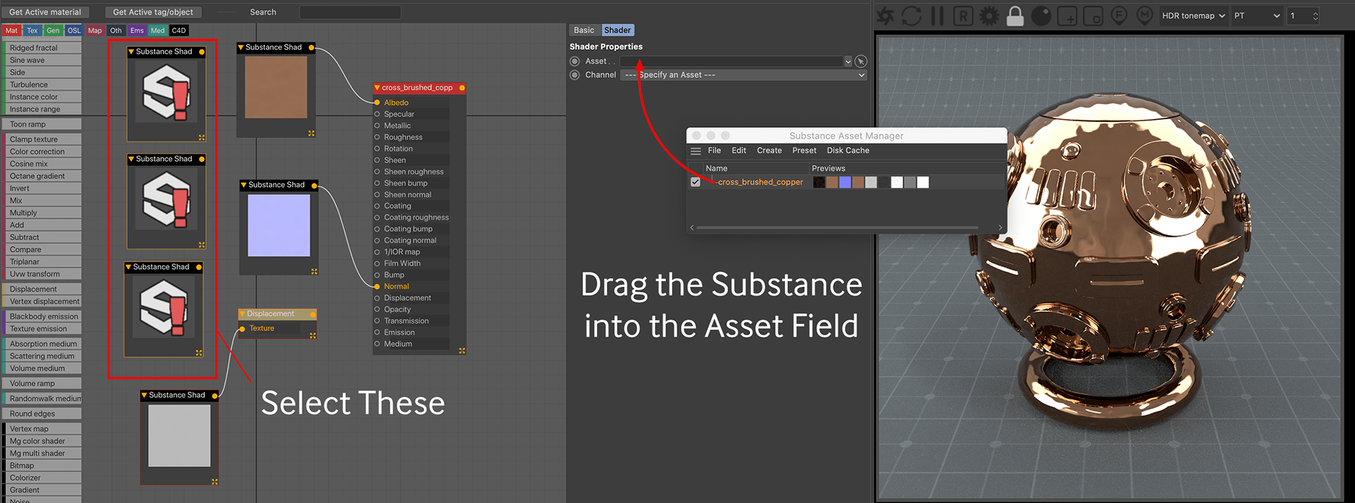 This guide is meant to help you quickly get Substance Archives (SBSARs) into C4D, and then use them to build Octane materials with as little stress as possible.