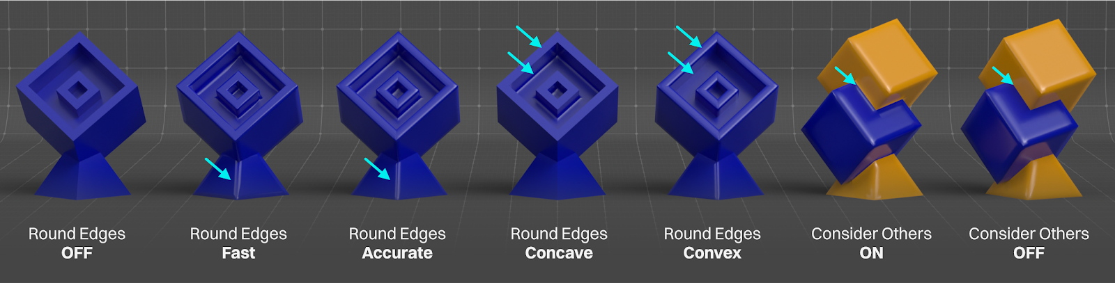 Concave and Convex are the same as Accurate, but only affect edges that are either concave (less than a 180 degree angle where connected) or convex (greater than a 180 degree angle where connected).