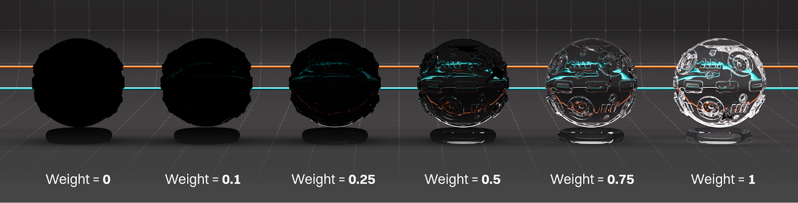 In the Standard Surface material, the Weight slider controls the overall contribution of the channel. This is a linear scale similar to the Float slider in the other materials. Where it differs is how it handles the color.