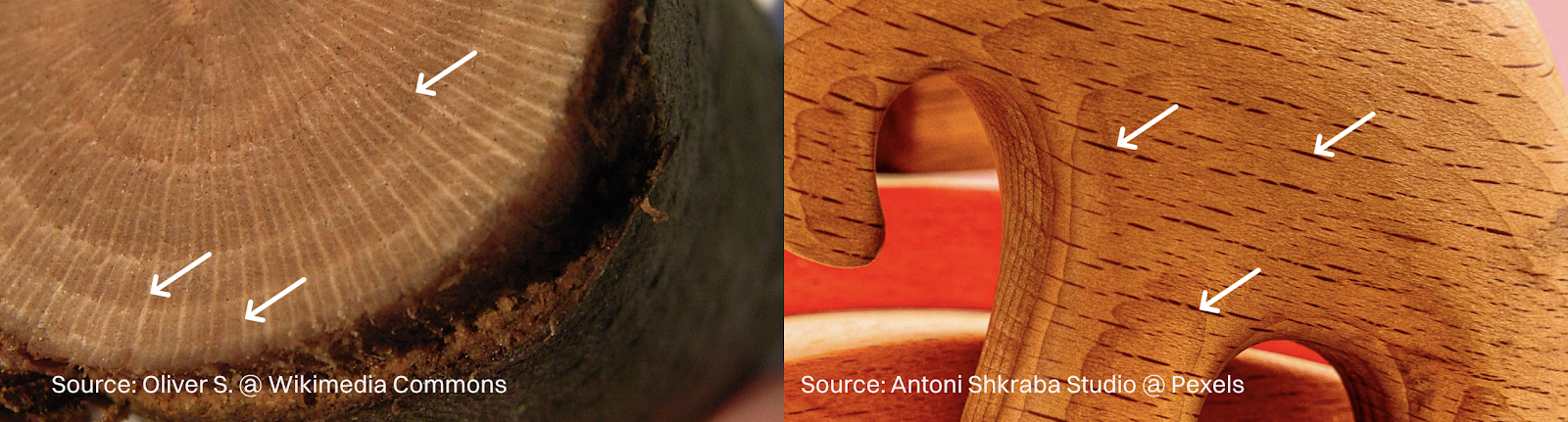 As if that’s not enough, we also have a choice as to how we cut the wood perpendicularly to the rings.