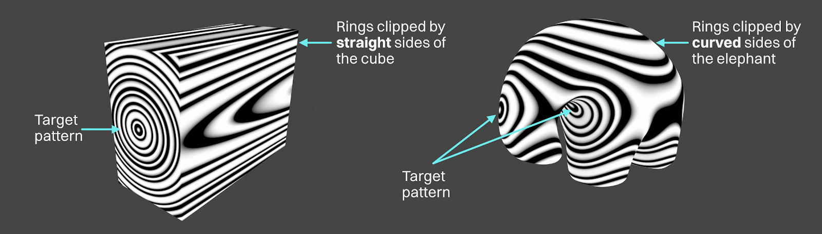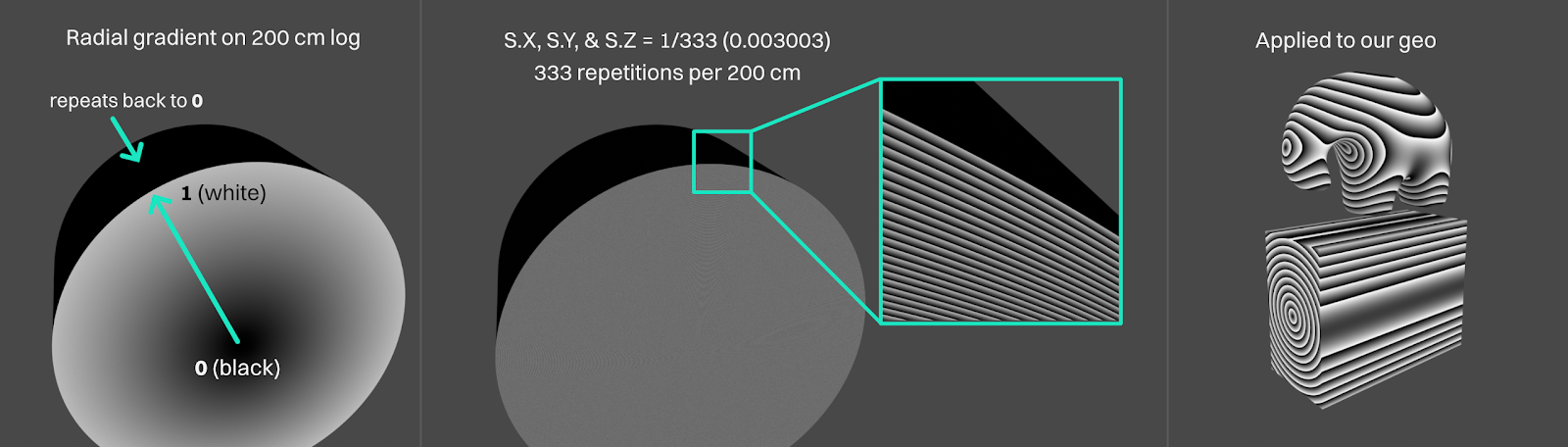 Reproducing the pattern Medullary rays grow in is a perfect example of where we’d use Cylindrical projection in 3D. We want all of the lines to converge and pinch at the center of the disc side of the cylinder, but not distort much around the circumference or up and down the height of it.