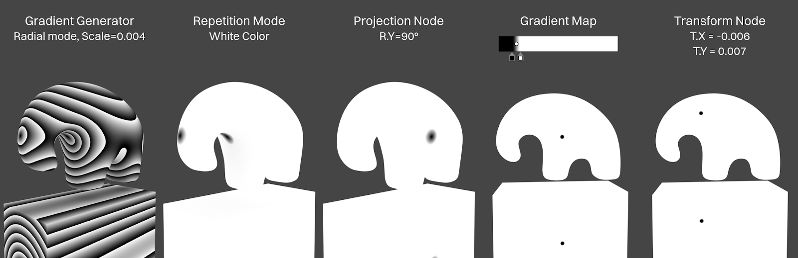 The last part before we get to recoloring is the eye. There are a few valid approaches to this that range from the new decal system to a UV texture, but in the spirit of keeping everything procedural and simple, we’re just going to use another Gradient Generator.
