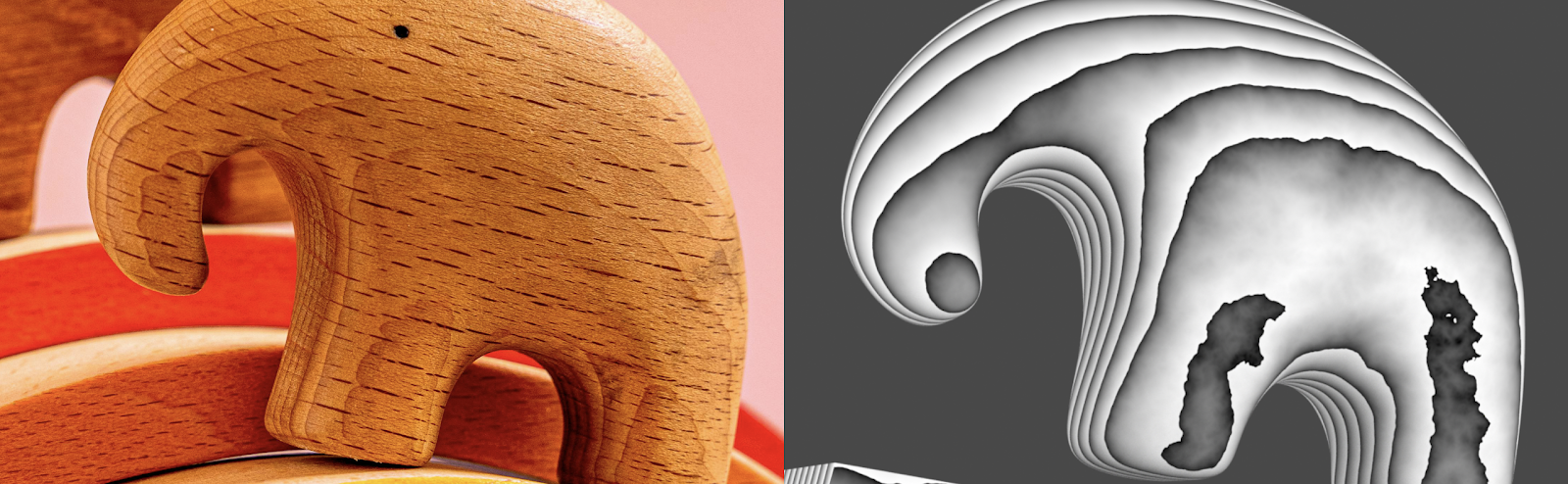 Our final texture uses several projections that do not scale with the model. Since it’s based on real wood, if we apply it to a larger model (assuming it’s based on real-world values), it will look like it’s carved from a larger chunk of wood (the pattern will be a lot smaller, but still realistic), but if we’re expecting to take our elephant and make it 200cm tall and keep the pattern the same (or animate the scale) we’re going to be in for a world of hurt.