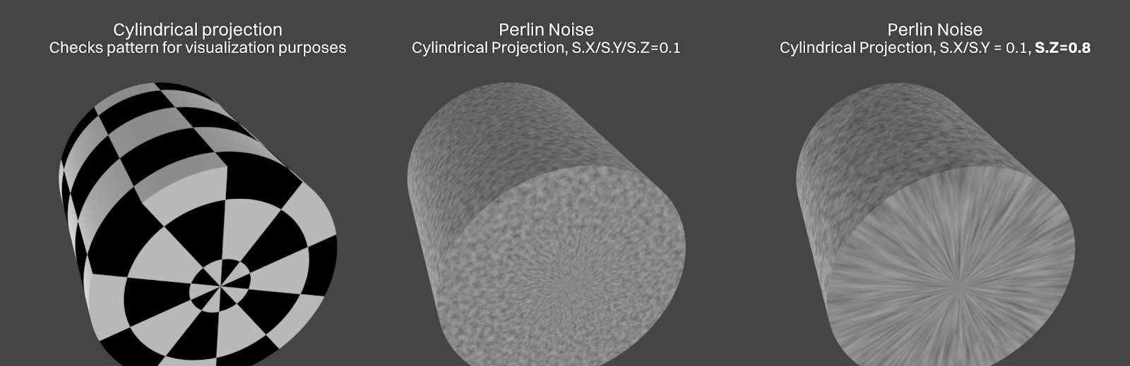 Let’s attach a Cylindrical projection node (or just a projection node set to “Cylindrical”) to our noise.