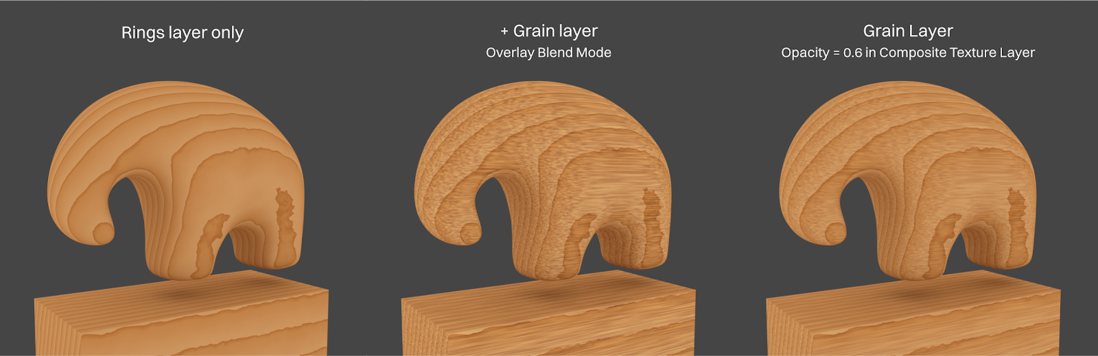 Let’s check the Enable checkbox in the Composite Texture Layer to turn it on. By default, it’s set to the Normal blend mode which will override the rings. This is what we want now since we’re focused on the grain.