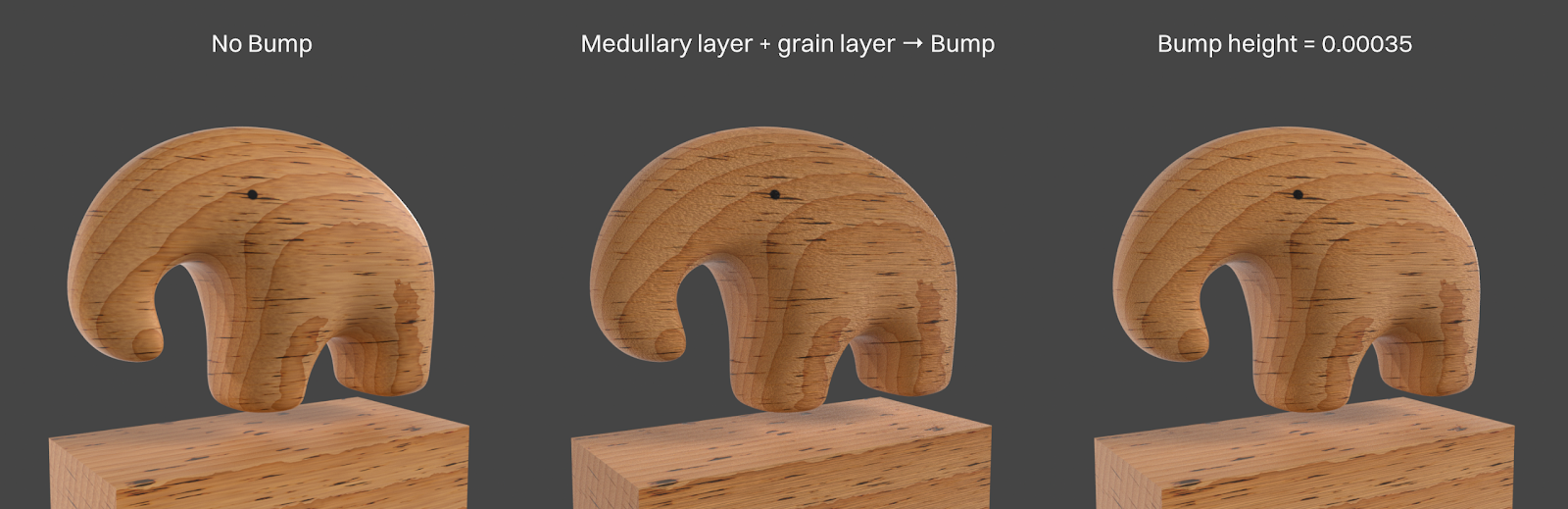Bump, Normal & Displacement:The surface properties depend on how it was worked with. Natural wood is irregular and bumpy, but very often we mill/lathe/sand/polish it to make it smoother. Less porous wood tends to smooth out better when sanded than more porous wood.
